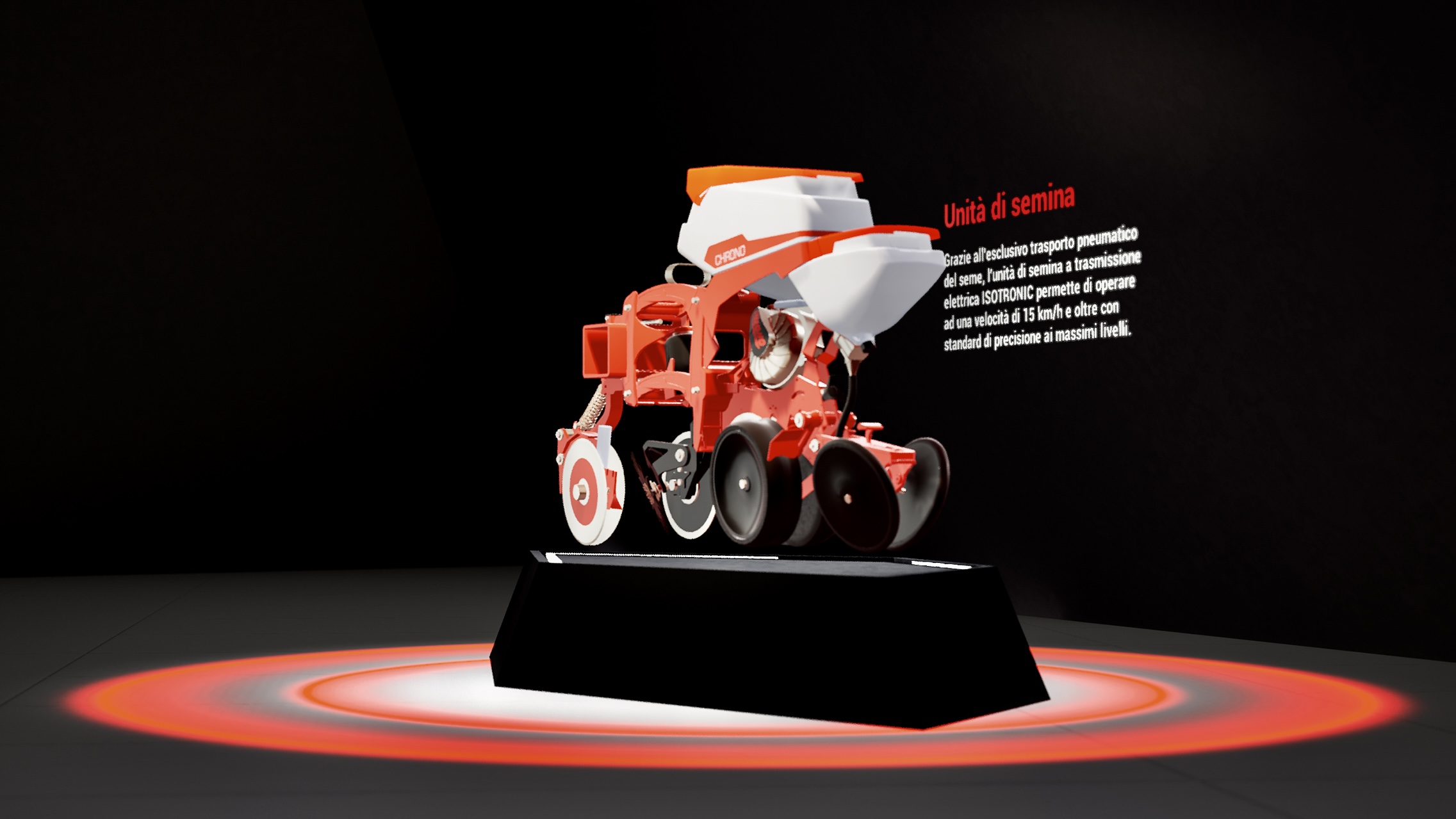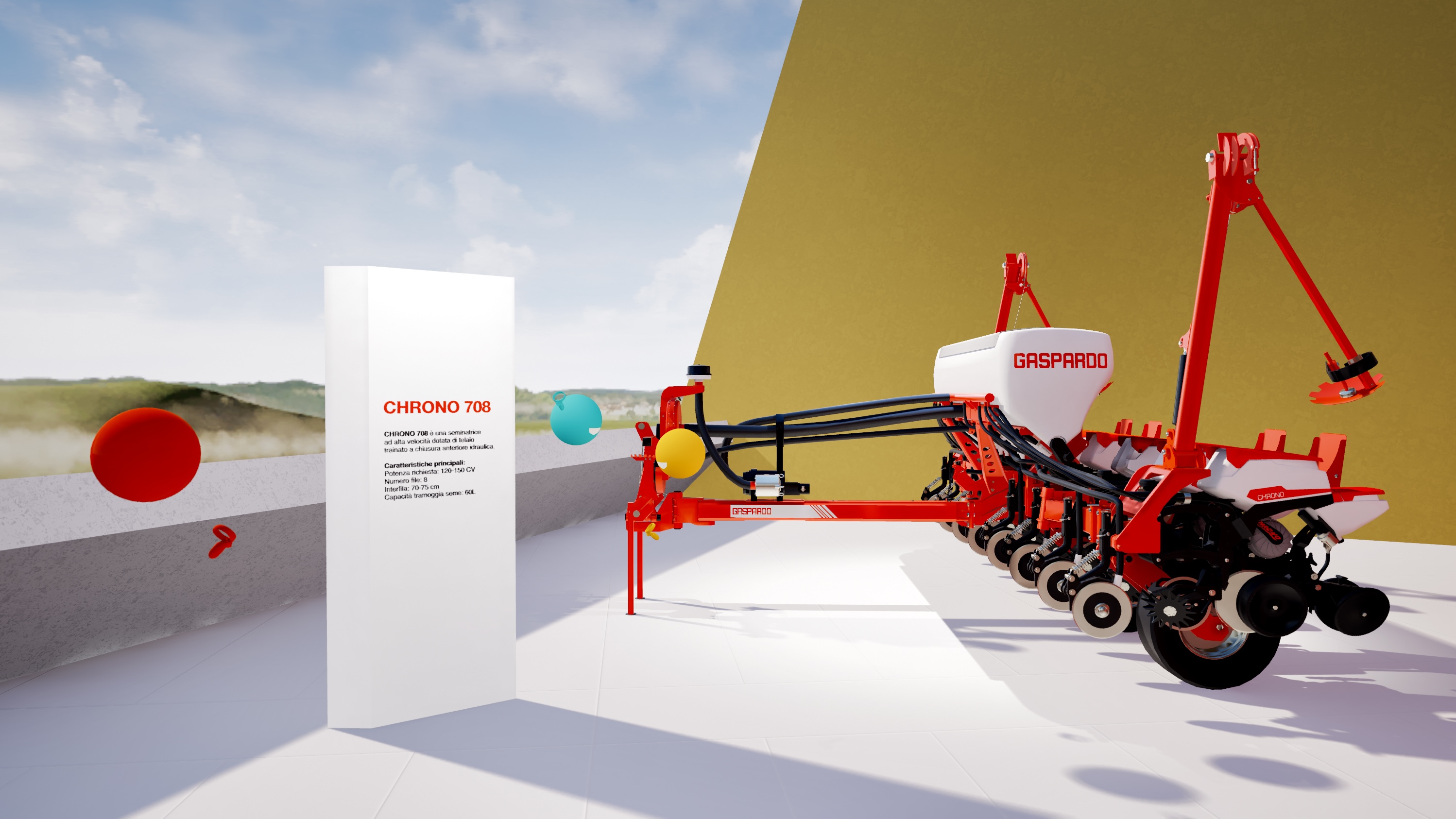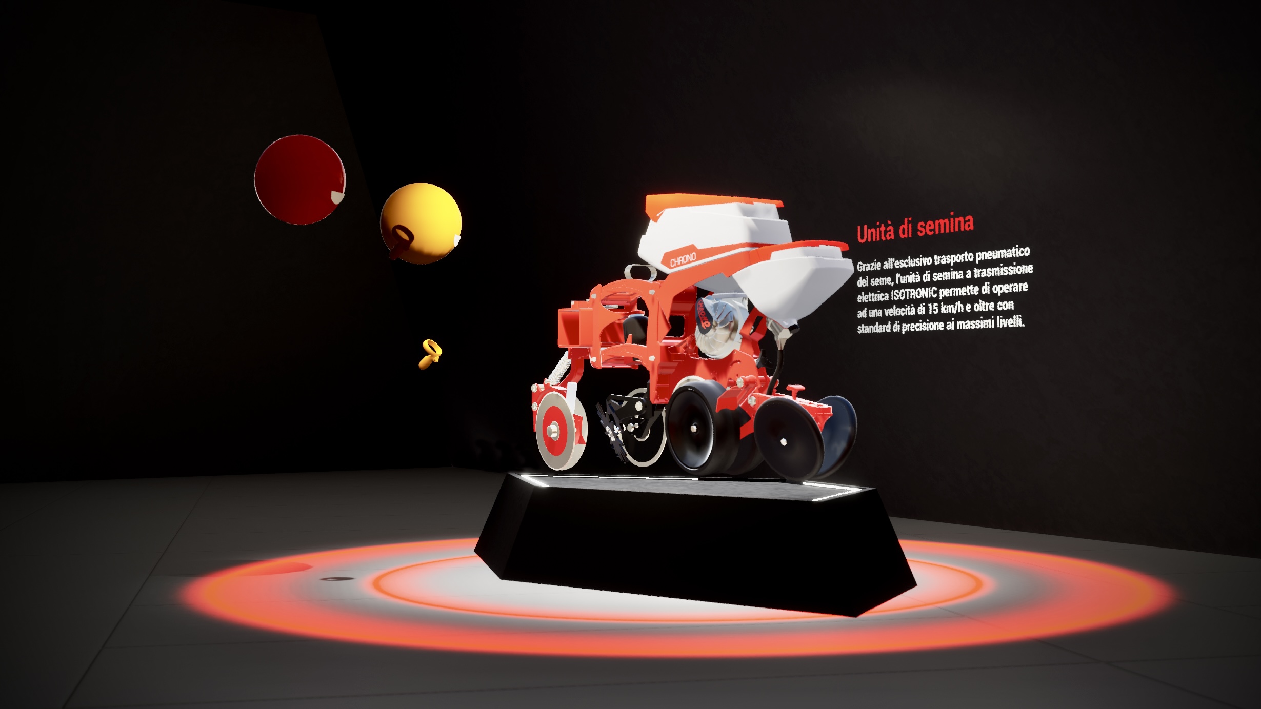 Maschio Gaspardo Virtual Exhibition is a virtual space developed for the Italian agriculture machinery producer Maschio Gaspardo. The space is a virtual stand where visitors, guided by an expert, can discover Maschio’s machineries and products, in an environment where otherwise it would not be possible to explore them, because of their massive sizes. Machineries were built according to the original engineering projects, and they are highly optimized for the Oculus platform, since its computational limits.
